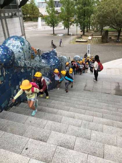 10時10分。鶴見緑地公園に着きました。全員、元気です。