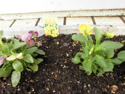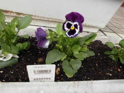 新たに玄関正面に置かれたのは、パンジーやビオラなどです。