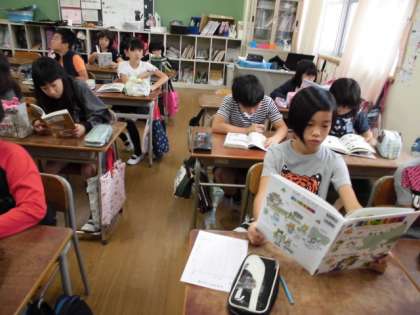 遠足が延期になった4年生たちですが、さっと切り替えて「読書タイム」にのぞんでいました。