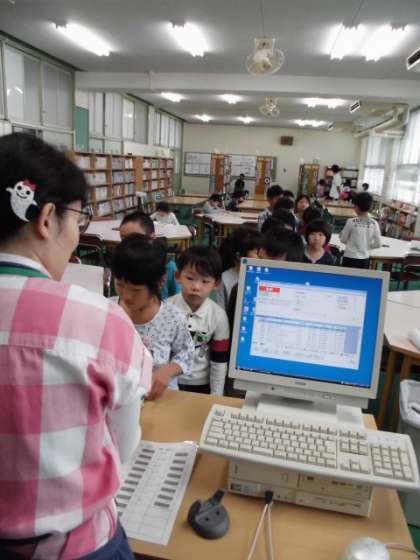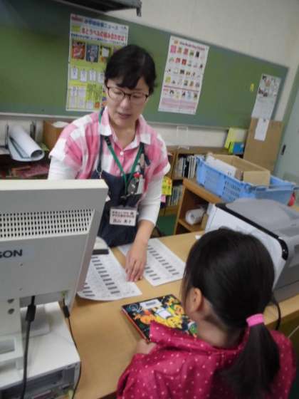 返却を終えた子どもは、借りる本や自由読書する本を探します。