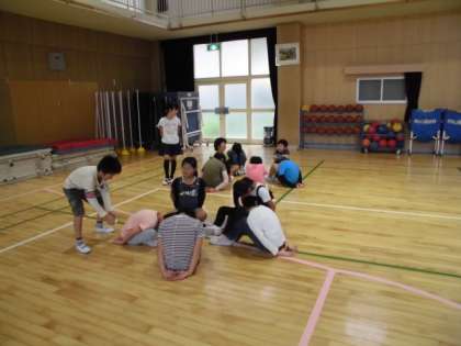 お弁当後に各班ごとに「ハンカチ落とし」を楽しんでいました。
