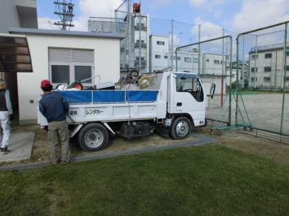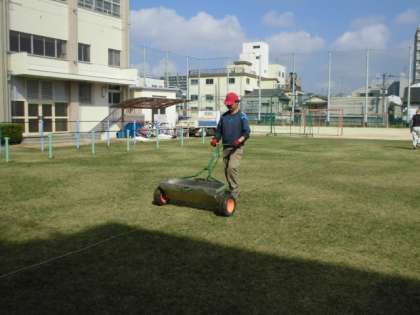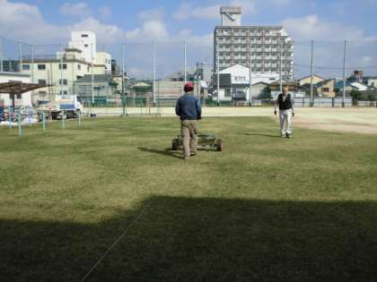 8日の日曜日、午後から芝生のエアレーション工事がありました。