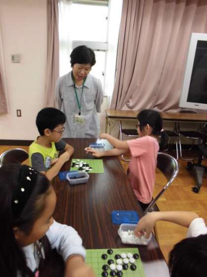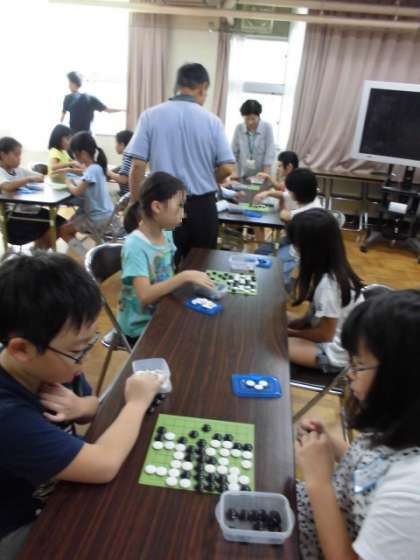 1学期に続いて多目的室で、4年生が生野区民センターの囲碁教室の先生にご指導していただいております。