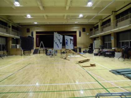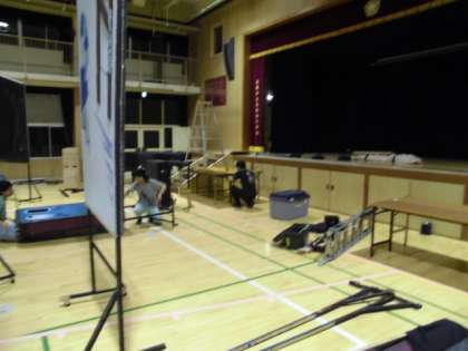 人形劇団クラルテの皆さんが、前日から会場準備をしています。