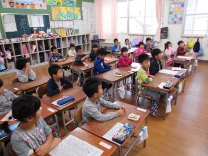 1年生は、算数プリントをしていました。