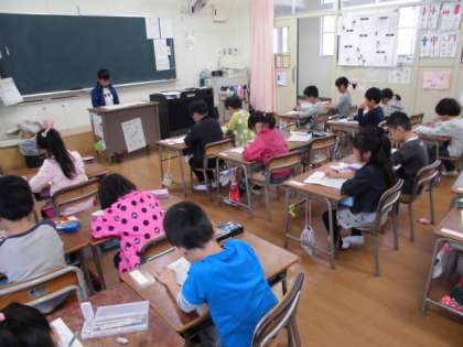 1組では、子どもが前へ出て答え合わせが始まろうとしていました。