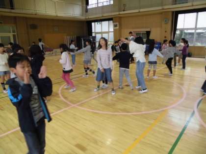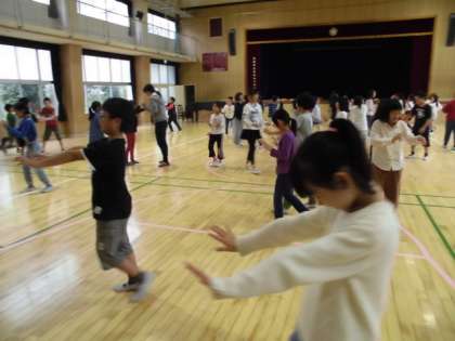 遠足が再延期になり、掃除の時間をはさみ講堂でお楽しみタイムということでゲームを楽しみました。