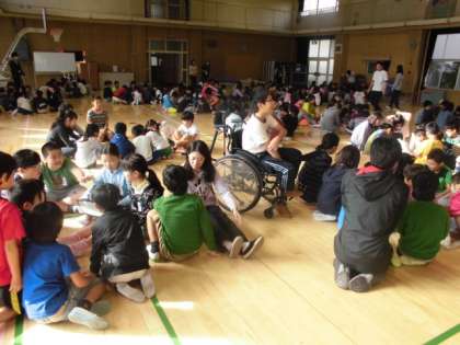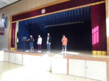 今朝の児童集会は、集会委員会による何の音か当てるクイズでした。