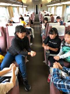 車内でくつろいでいます。