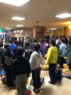 宿の女将さんの挨拶がありました。全員元気です。