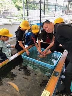 直接海の生物を触れるコーナーです。