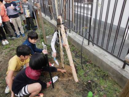 学校東面道路沿いに植樹いたしましたので、ご来校の際にご覧ください。