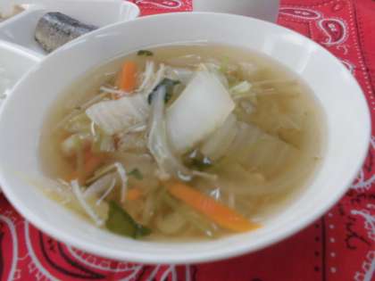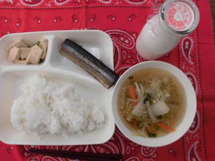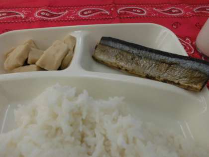 献立は、さんまのさんしょう焼き、すまし汁、高野どうふの煮物、ごはん、牛乳でした。