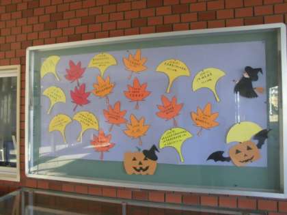 玄関掲示が落ち葉をモチーフにしたものになりました。