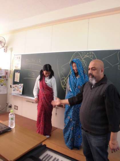ターバンやサリーなども子どもたちに実際に身に付けることもしていただきました。