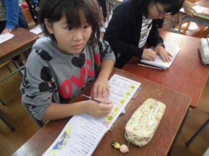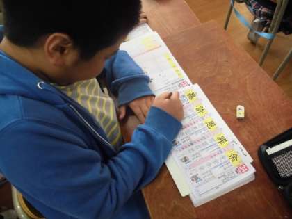 5年生では、漢字ドリルを使って、各自が漢字の学習をしていました。