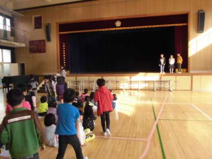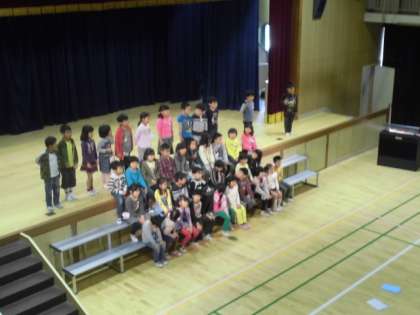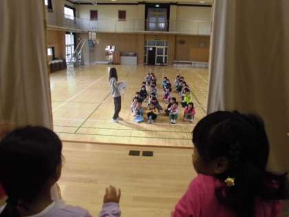 講堂での活動は初めてだったので、立つ位置から確認していました。