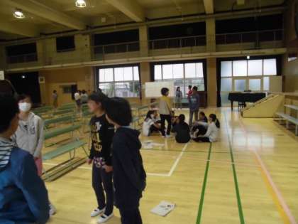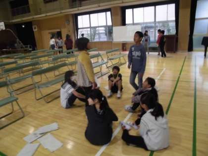 きれいに整った講堂で、5年生が学習発表会に向けての練習を始めました。
