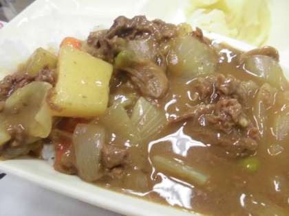ビーフカレーライスは、牛肉にワインで下味をつけたり、セロリーを香りよく炒めて合わせたり、ローレルを煮こむときにつかったりするなど、本格的な調理でつくっています。今日も、とてもおいしくいただきました。