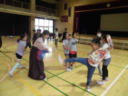 高学年は、校内発表で行うテコンドーの練習をしました。