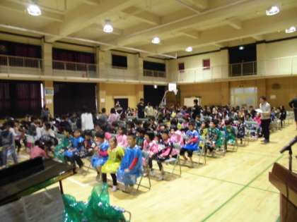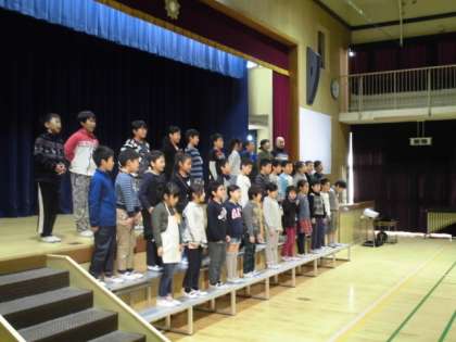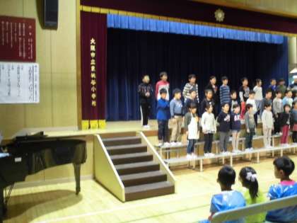 児童の相互鑑賞を兼ねて、学習発表会のリハーサルを行いました。