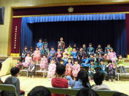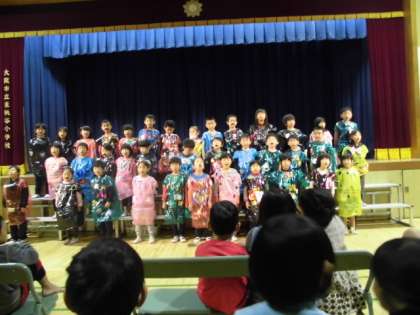 1年生の発表を最後まで鑑賞した幼児の園の子どもたち。1年生が途中から繰り返し歌っていた歌を覚えて、自分たちで歌っていました。