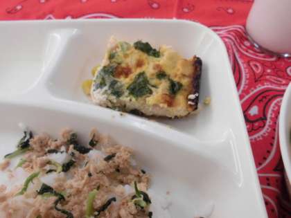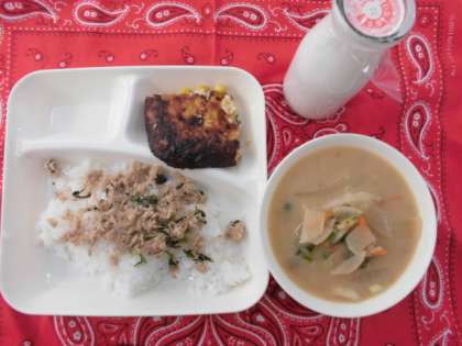献立は、千草焼き、みそ汁、ツナっ葉いため、ごはん、牛乳でした。