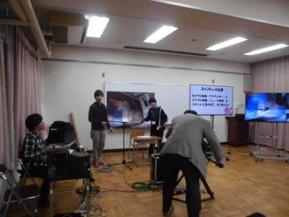 続いて、フロアディレクター、アナウンサー、テレビカメラ、スイッチャーに分かれて希望者がニュース番組の実際を体験しました。