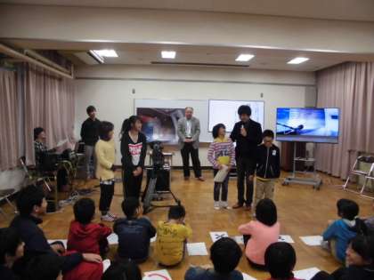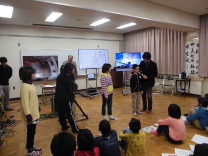 朝日放送の皆様には、打ち合わせから今日の企画・実施にいたるまで、そして、多目的室に本格的な場や機材をセットし、子どもたちに実際に体験させていただいたりしてありがとうございました。