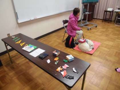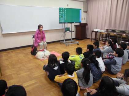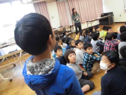 山本さんからの質問に答えた後、いろいろなお話をしてくださいました。また、子どもたちの質問にもていねいに答えていただきました。ご自身で折られた難しい折り紙をおみやげに持ってきていただきました。