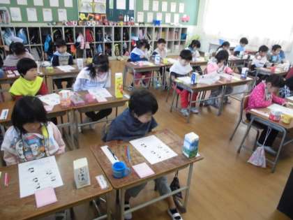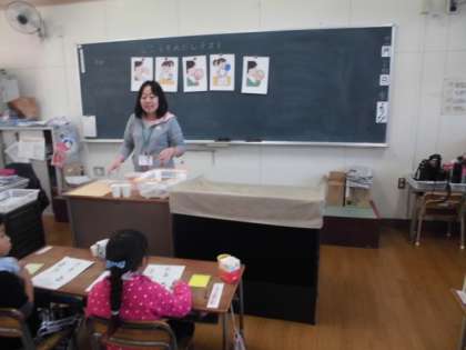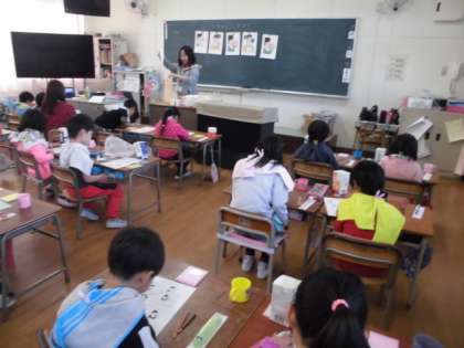 4時間目の時間帯に1年2組の子どもたちが歯垢染め出しをしていました。