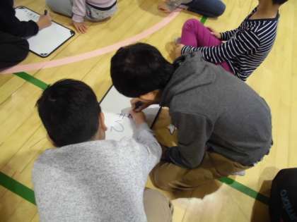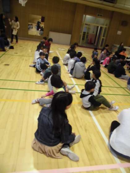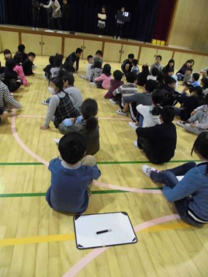 今朝は、講堂で集会委員会による伝言ゲームを行いました。