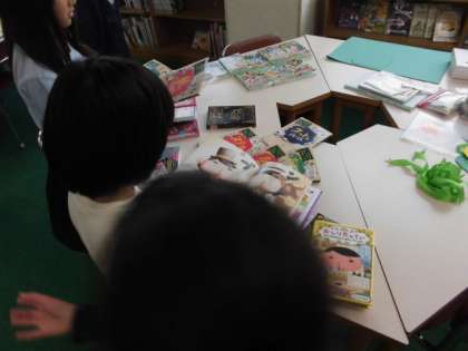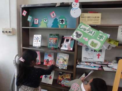 新しい本、クリスマスコーナーの本、各学年の学習していることに関係あるコーナーの本など、子どもたちはよく観て利用しています。
