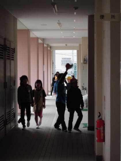 遊びから戻ってくる子どもたちの中には「右側、右側」と注意の声掛けをしている子どももいました。