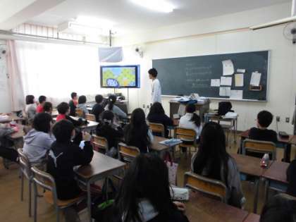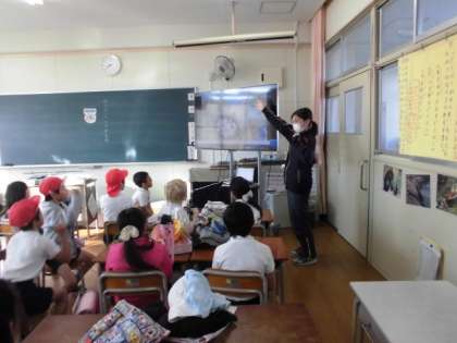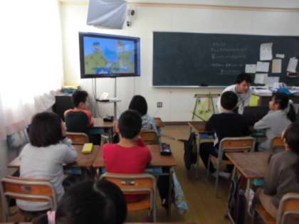 4年生と2年生が、DVDを視聴しながらしっかりとした発声で活動していました。