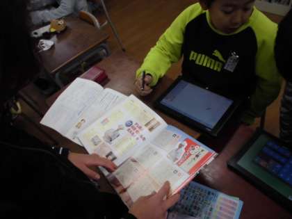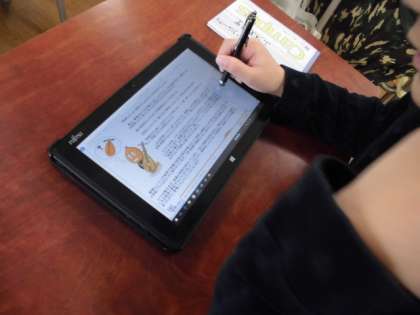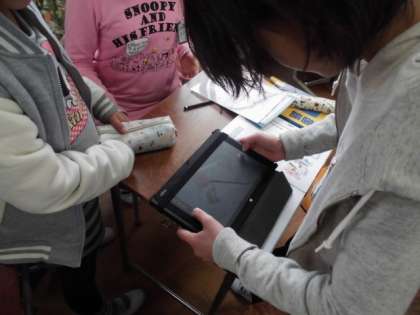 5年生が国語科の教材の発展的学習として「和の文化」について、自分が調べたいことをグループごとにタブレット端末を使って調べていました。