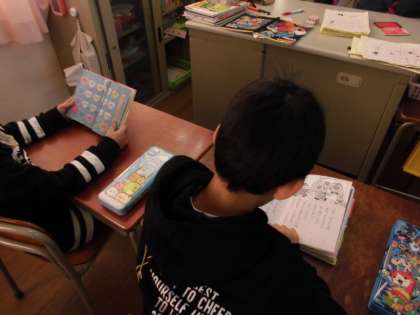 2年生では、学習が済んだ児童から読書をしていました。