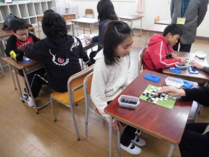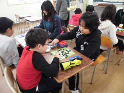 本校では、4年前より囲碁教室の先生からゲストティーチャーとして囲碁を教えていただいたり、クラブ活動でご指導をいただいたりしています。
