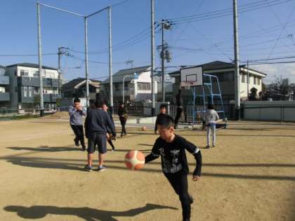 今日は寒さもゆるみ、穏やかな日差しの中運動場で子どもたちが歓声をあげながら遊んでいました。