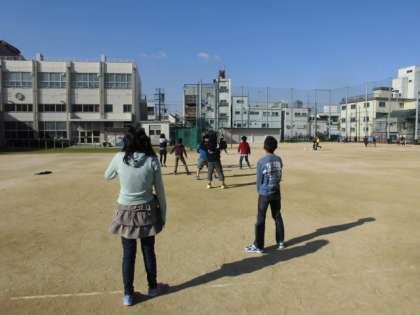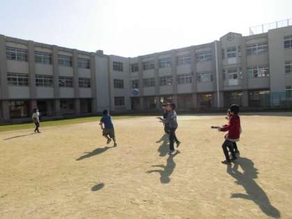 5年生は、男子、女子に分かれてドッジボールを楽しんでいました。