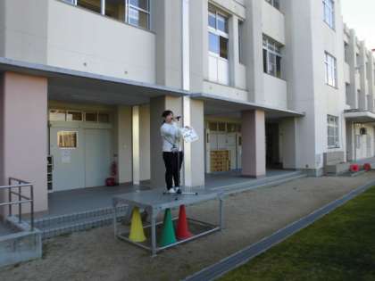 朝会が終わると、短い距離ですが、ピロティまで行進をします。しっかりと太ももを上げて行進すると身体の芯から温まります。