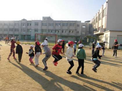 みんなでジャンプのタイミングを合わせたり、みんなが跳ぶのに合わせて縄をサッと回したりする要領が難しいようで、なかなか回数が増えません。