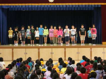 全校児童集会で、前期児童代表委員会の認証式を行いました。代表委員会は、学級代表・委員会の委員長・副委員長で構成されています。委員会は、運営・放送・飼育栽培・図書・健康・集会・運動・掲示・給食の9つで活動しています。児童会の行事を盛り上げて学校生活が楽しくなるよう取り組んでくれます。これからも、各委員会の様子を紹介していきます。