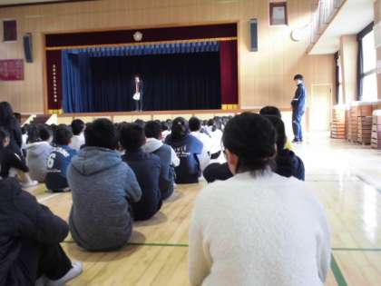 校長の話の後は、生活指導担当から冬休みの生活についての話でした。