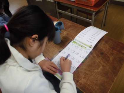 算数の計算ドリルをしたり、3学期のめあてを書いたりなど各学級によって学習タイムを活用しています。