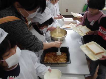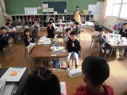 「いただきます」の声とともに給食をいただきます。