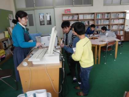 3年生の図書の時間では、図書の貸し出し手続きをしていただいてました。