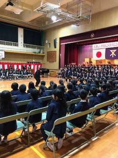 創立90周年、おめでとうございます。厳かで立派な記念式典に続いて、記念ビデオ、ミニコンサートがありました。講堂会場に子どもたちの笑顔があふれるとともに美しい歌声や演奏が響きました。