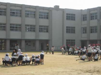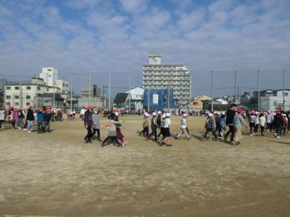 今日もお天気に恵まれ、音楽に合わせて全校で行いました。昨日のぬかるんでいた所も土を入れて踏み固められ走りやすくなりました。