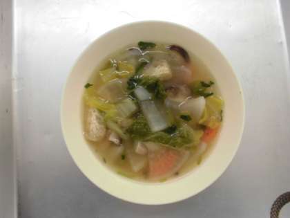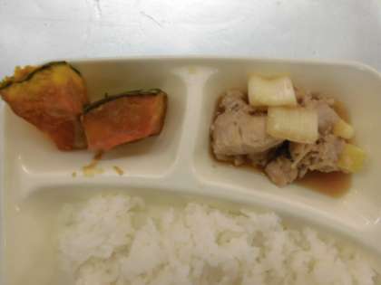 きょうの「のっぺい汁」は、さといも・にんじん・油あげなどを煮て、とろみをつけたお汁です。 あたたまります!
